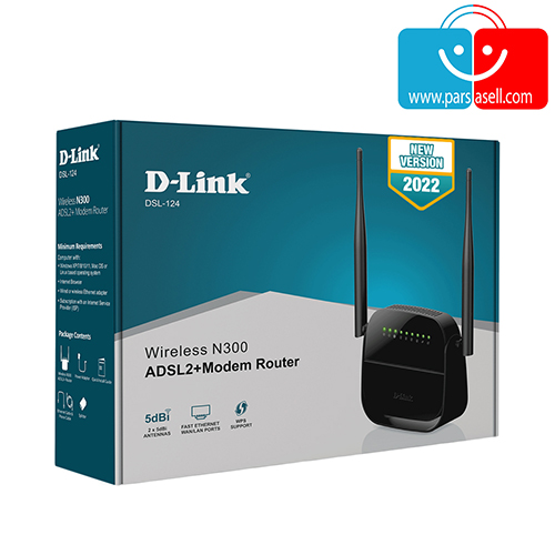 مودم روتر ADSL2 Plus بی سیم N300 دی-لینک مدل DSL-124 New که با نام تجاری D-LINK DSL-124 New ADSL2+ Wireless N300 Modem Router که توسط شرکت D-LINK به بازار عرضه می شود. روتر یا مسیریاب، دستگاهی است که دادههای اینترنتی را در شبکه مسیریابی میکند.در واقع یک روتر دارای چندین اینترفیس یا پورت است که بر روی هر کدام از این اینترفیسها، یک شبکه محلی یا LAN متصل گشته است.تجهیزات شبکه دی لینک برای شرکت های کوچک و خانگی (SOHO) و شرکت های کوچک و متوسط تجاری (SMB) تولید می شوند و این شرکت یکی از بزرگترین شرکت ها در این زمینه محسوب می شود.از مهم ترین ویژگی های مودم قابل حمل دی لینک DSL-124 می توان به ارزش بالای خرید در برابر قیمت پرداخت شده، کارآیی و عملکرد فوق العاده بالا، امکانات و قابلیت های گسترده، کیفیت ساخت بسیار استارندارد، طراحی و ظاهر فوق العاده، فن آوری ایده آل برای برقراری ارتباطات، امنیت جامع و کیفیت خدمات، حفاظت فایروال، کنترل دسترسی کاربر، استاندارد امنیت بیسیم اشاره کرد.