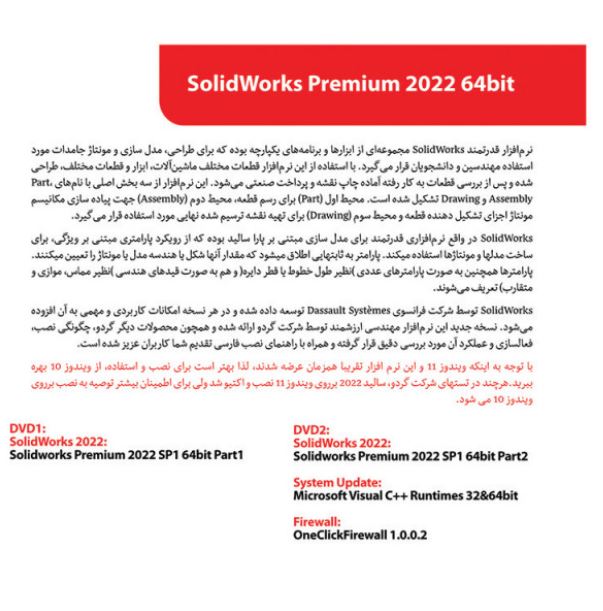 رم افزار قدرتمند SolidWorks مجموعهای از ابزارها و برنامه های یکپارچه بوده که برای طراحی، مدل سازی و مونتاژ جامدات مورد استفاده مهندسین و دانشجویان قرار میگیرد. با استفاده از این نرم افزار قطعات مختلف ماشین آلات، ابزار و قطعات مختلف، طراحی شده و پس از بررسی قطعات به کار رفته آماده چاپ نقشه و پرداخت صنعتی میشود. این نرم افزار از سه بخش اصلی با نام های Part، Assembly و Drawing تشکیل شده است. محیط اول (Part) برای رسم قطعه، محیط دوم (Assembly) جهت پیاده سازی مکانیسم مونتاژ اجزای تشکیل دهنده قطعه و محیط سوم (Drawing) برای تهیه نقشه ترسیم شده نهایی مورد استفاده قرار میگیرد.