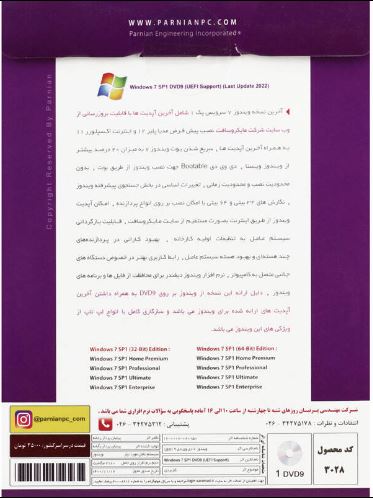 شامل یک عدد DVD9، ارائه شده در نسخه های ۳۲ بیتی و ۶۴ بیتی با قابلیت نصب در سیستم های سازگار با UEFI و قدیمی تر