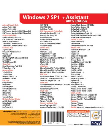 - ویندوز ۷ سرویس پک ۱ همراه با آخرین بروزرسانی رسمی و فعالسازی خودکار در دو ساختار ۳۲ و ۶۴ بیتی - مجموعه ای بی نظیر از نرم افزارها و ابزارهای عمومی و کاربردی مناسب کاربران مبتدی و حرفه ای - نسخه جدید نرم افزار Office ۲۰۱۹ سازگار با ویندوزهای ۷، ۸.۱ و ۱۰ و همچنین نسخه جدید نرم افزار Nero ۲۰۲۱ - اتوران اختصاصی به همراه راهنمای نصب فارسی