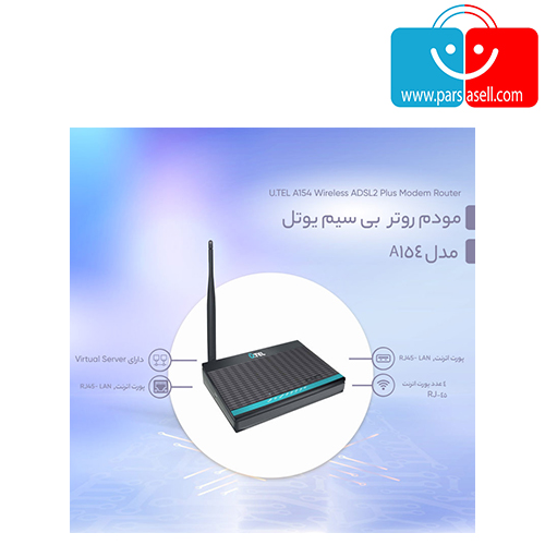 مودم روتر A154 ساخت برند یوتل بوده که یک برند کاملا ایرانی است. این مودم توان برقراری ارتباط با اینترنت تا سرعت 24 مگابیت در ثانیه را برای دریافت (دانلود) و با سرعت 2 مگابیت در ثانیه را برای ارسال (آپلود) اطلاعات ارائه میدهد و هم چنین توانایی ایجاد شبکه بی سیم (wifi) را با سرعت انتقال داده 150 مگابیت در ثانیه را دارد. این دستگاه دارای یک درگاه تلفن و چهار درگاه اتصال شبکه بوده و از طریق رابط کاربری مناسب به صورت web-based قابل کنترل است. مودم U.TEL A154 به منظور اشتراک گذاری اینترنت پرسرعت در مصارف خانگی و سازمانهای کوچک طراحی شده است و با به کارگیری استانداردها و قابلیتهای کلیدی، یک انتخاب قابل قبول و ایده آل است.